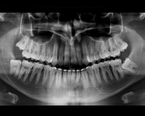 una radiografia delle arcate dentarie (che serve per verificare la presenza e la posizione dei denti decidui e permanenti)
